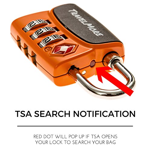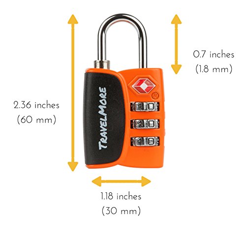2 ORANGE MOST DURABLE TSA APPROVED AND RECOGNIZED LOCKS: All TravelMore travel locks are 100% Travel Sentry certified and designed from the ground up to be the strongest and reliable luggage locks in the market. TSA screeners are issued codes and tools for secured acces to open the locks. Our special high strength zinc alloy lock bodies, hardened steel shackles and patented internal mechanisms can take so much force that we back our product up with an 100% lifetime warranty.