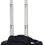 Telescoping push-button handle locks into place; luggage handle pass-through panels; smooth-rolling wheels for easy mobility