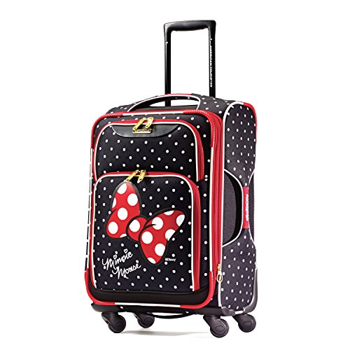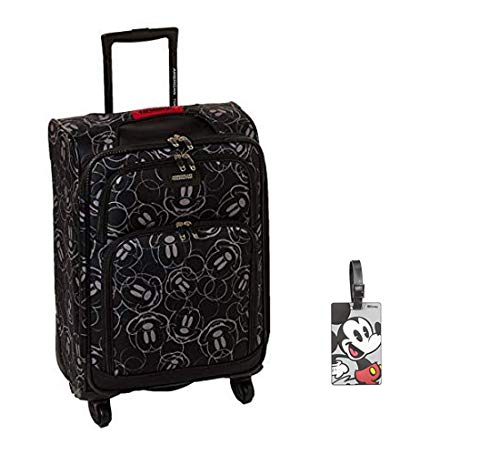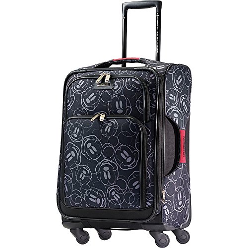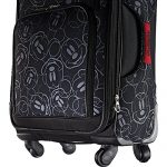 Perfect for a Disney trip or any vacation, this softside spinner case from American Tourister is a must-have for any Mickey Mouse fan. The American Tourister Disney Mickey Mouse Softside Spinner 21 is made from durable polyester fabric and features a stylish Mickey Mouse design with a push-button locking pull handle, an American Tourister branded ID tag, and single spinner wheels that make it easy to maneuver. The large main compartment is fully lined and detailed with crisscrossing straps to hold garments in place and a zippered pocket underneath the lid. Other features of this spinner include top and side grab handles, branded zipper pulls, and two front zipper pockets for added storage.