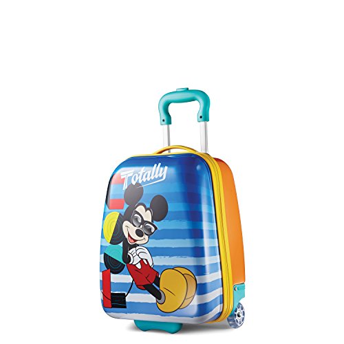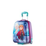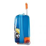 Show your love for your favorite animated character with this hardside upright travel case from American Tourister. The American Tourister 18″ Upright Hardside is made from lightweight and durable ABS material and features a sleek hardside design with side-mounted skate wheels, a mono tube pull handle, and a top grab handle for easy lifting. The interior is fully lined and detailed with crisscross tie-down straps to hold clothing in place and a zip around divider that creates two separate packing compartments. Detailed with colorful graphics of your favorite Star Wars characters, Nickeodeon, Disney princesses, and other Disney stars, this case is perfect for boys and girls on the go. Pack more fun with this luggage!