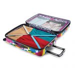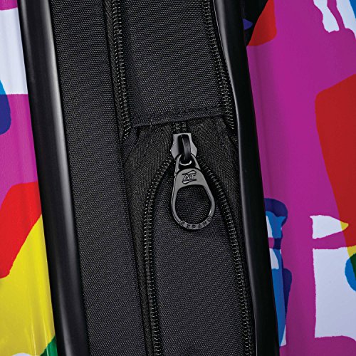 Book opening case with mesh divider and cross straps in main compartment with a zipped modesty pocket. Single spinner wheels for a smooth ride. All cases expand 1.5″.