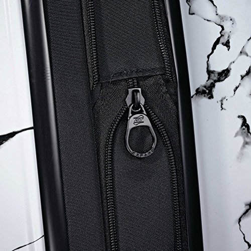 Book opening case with mesh divider and cross straps in main compartment with a zipped modesty pocket. Single spinner wheels for a smooth ride. All cases expand 1.5″.