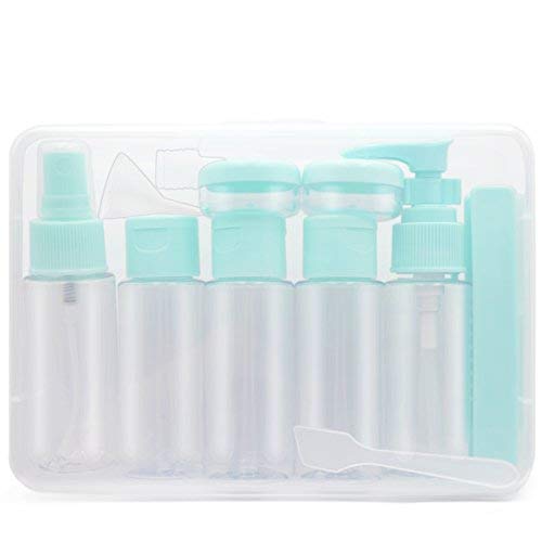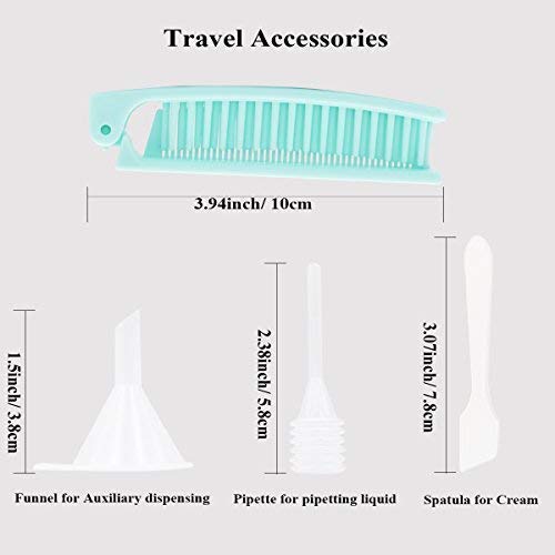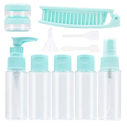 WHAT YOU GET: Three 50ml (1.7oz.) flip-cap bottles, one 50ml (1.7oz.) lotion bottle, one 50ml (1.7oz.) spray bottle, two 10g (0.35ounce) cream jars, one funnel, one pipette, one comb, one make-up spatula, one printed labels sheet and clear case. It can meet all your needs when you go to trip.
