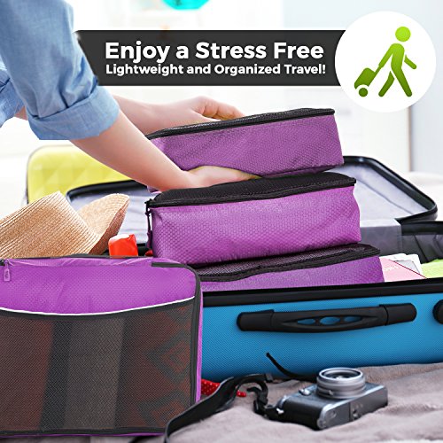 PROTECT YOUR CLOTHES AND LUGGAGE from stains, wrinkles and damages while traveling; the cubes are made of durable rip-stop honeycomb Nylon fabrics that tucks your clothes safely inside.