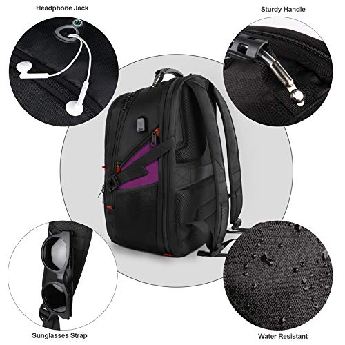 The extra large backpacks own 20+ Independent multi pockets and various spacious roomy compartments could make all your travel gear and electronic accessories organized.