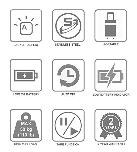 CHOICE OF 4 UNITS OF WEIGHTS Easily change between Kilograms, Grams, Pounds & Ounces for different countries just by pressing the power button repetedly