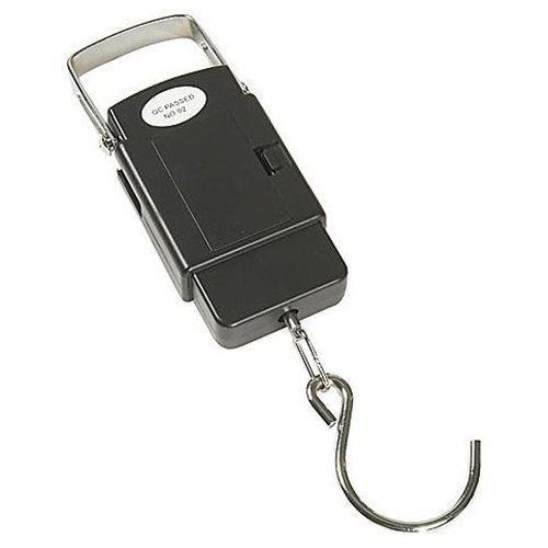 This digital scale weighs luggage up to 85 pounds and features a large, easy-to-read back light display. The automatic hold feature allows you to weigh the luggage, set it down and then read the weight. It Features a large strong metal hook to hold heavy luggage, this scale powers off automatically after 90 seconds to conserve battery power.