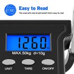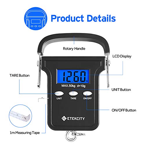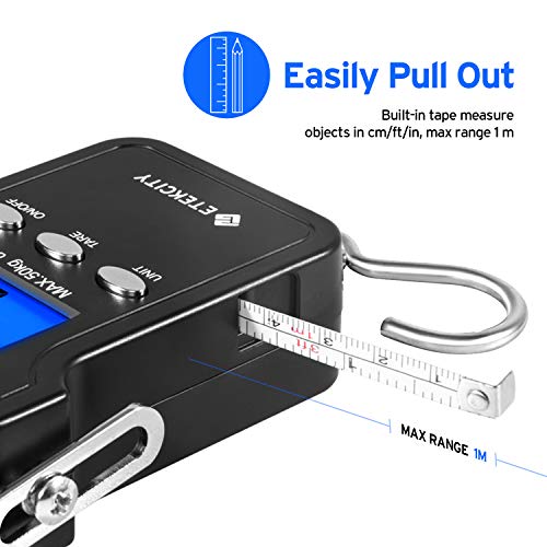 Included Features: The heavy-duty, stainless steel hook is durable and can also be stored in the back of the scale. A 1-meter measuring tape allows you to also accurately size your items (e.g., fish, packages, and carry-on luggage).