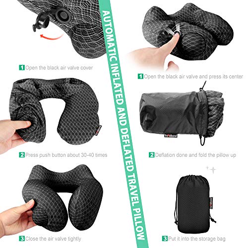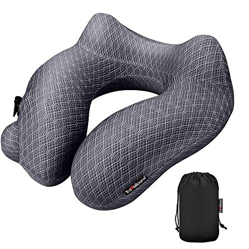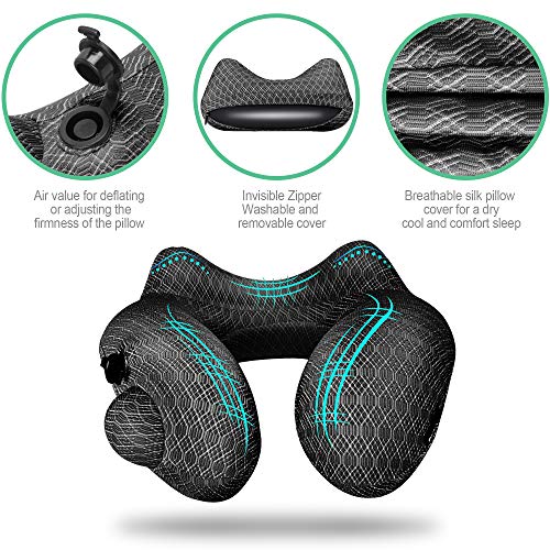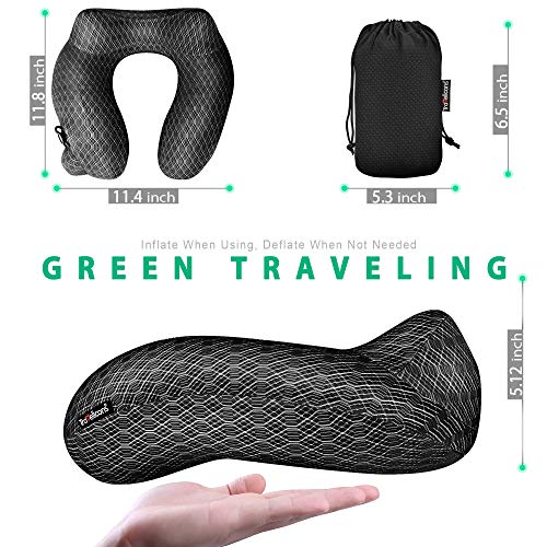 【LIGHTWEIGHT AND COMPACT SIZE】-With compact and portable design,this U shape airplane pillow is extremely lightweight(N/W:0.66lb).This inflatable travel pillow can be deflated with a mini pouch for you to attach to carry-on .