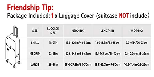SIZE: S: Fits 18″-21″ Luggage(50cm x 61cm), fits 18″-21″ Luggage suitcase. M: Fits 22″-25″ Luggage(52cm x 72cm), fits 22″-25″ Luggage suitcase. L: Fits 26″-28″ Luggage(63.5cm x 80cm), fits 26″-28″ Luggage suitcase.