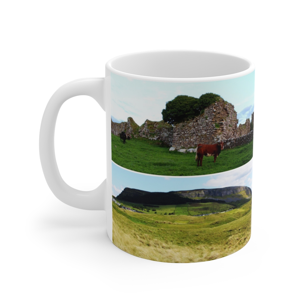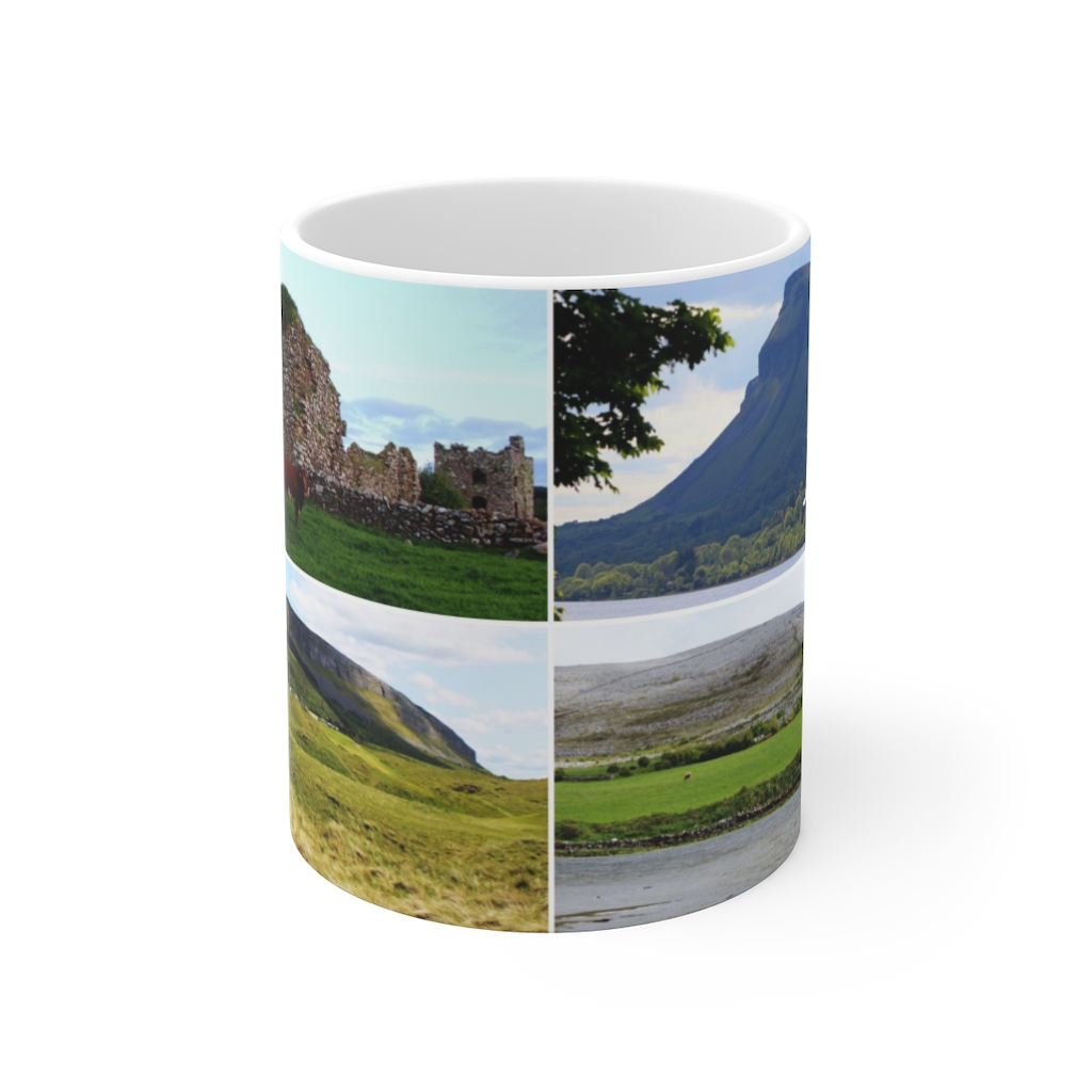A gorgeous collage of Ireland! Perfect for coffee, tea, and hot chocolate, this classic shape white, durable ceramic mug in the most popular size. High-quality sublimation printing makes it an appreciated gift to every true hot beverage lover. Original photos byAnna Marie Jehorek are of The Burren, Glencar Lake, Moygara Castle, Knocknarea