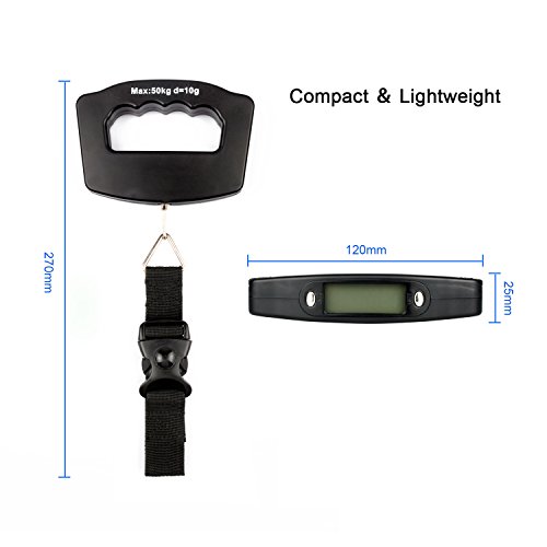 kerong Portable Digital Luggage Scale Handheld with Strap Suitcase Weighing 110lb/50kg for Travel and Home Use (Black)