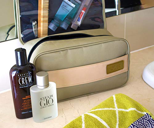 COMPACT MEASUREMENTS – Measures: 11″ (L) x 4.3″ (W) x 6″ (H), this roomy shaving kit travel organizer bag is a great size and allows for decent sized bottles of hair or face products to fit nicely inside, or if you prefer travel size containers when traveling, the shower kit will ensure you don’t have to leave any dorm essentials behind. The travel pouch being compact enough to fit into your overnight suitcase makes it the perfect mens travel bag.