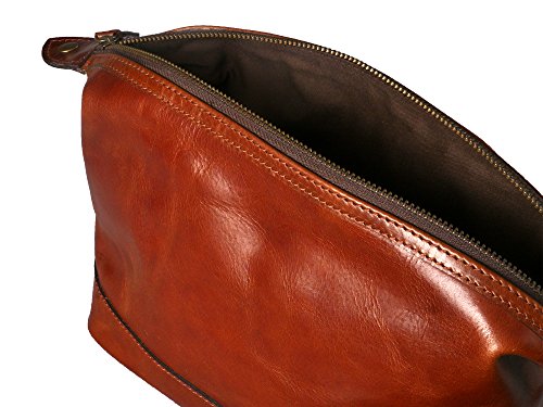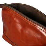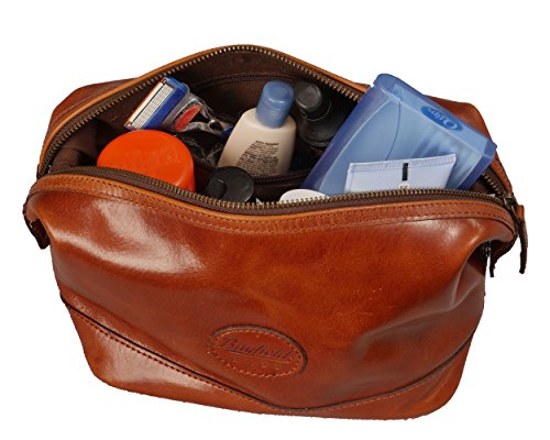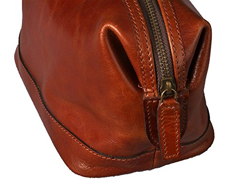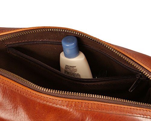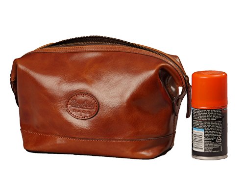 PREMIUM LEATHER MENS TOILETRY CASE is made of a rich Buttery soft brown leather. With a roomy interior, this dopp kit is 7″ tall, (taller than most toiletry cases) to accommodate items with extra height