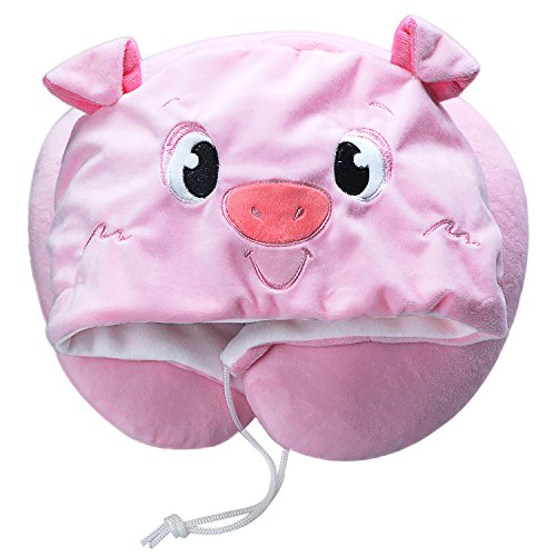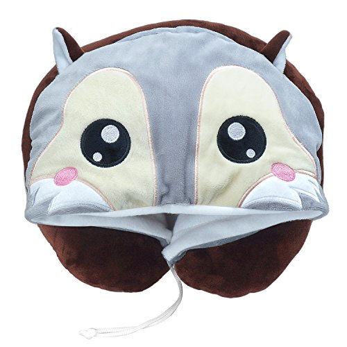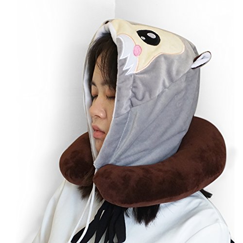 LOVOUS Cute Cartoon Animal Hooded Travel Neck Support Pillow Soft Plush Toy Comfortable U Shaped Pillow with Hat for…