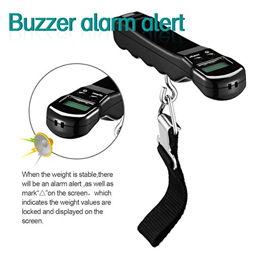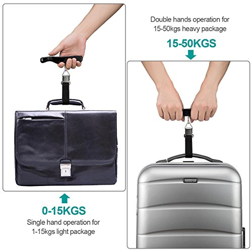 EASY TO READ BACKLIGHT LCD DISPLAY – This luggage scale LCD with green backlight and large digital LCD backlight display easy to read through night and day, you don’t have to strain or bend to see. Displays units of measurement in pounds,kilograms. Dual units display shows two weighing units kg and lbs separately, there is a button to switch the weighting units as you like.