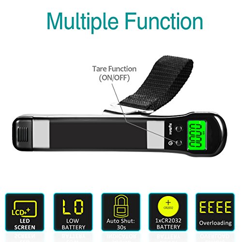 MULTIPLE FUNCTION – Data lock function – when the loading is stable display locks onto weight for easy reading; Tare and auto-off function – Auto off after 30s to help conserve battery life; Overload indication – When the luggage is overweight, the buzzer on the luggage scale will alarm.Low Battery indication: Lo.