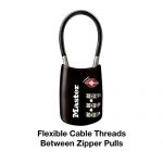 Travel lock is constructed with a metal body for durability and a vinyl covered cable for resistance to abuse from baggage handling equipment