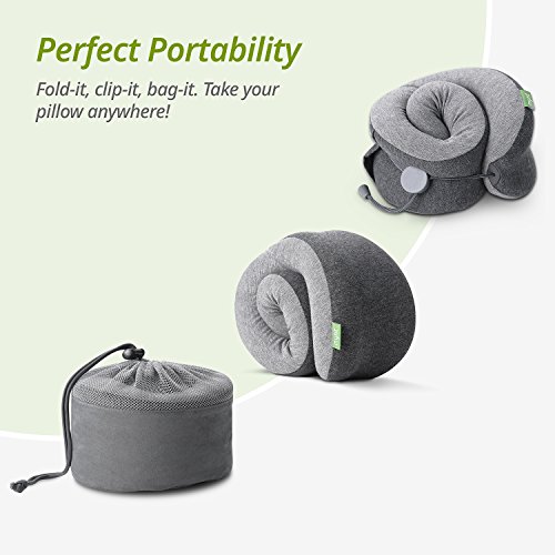 An ergonomic fold-up design clips down and can be effortlessly stowed in a bag or suitcase. At 240g / 0.62 lb, Memory Foam Travel Pillow is as light, compact, and travel-friendly as a pair of pants. A carry bag helps keep the pillow clean and dry – simply unzip the cover to wash, for long-term hygiene.