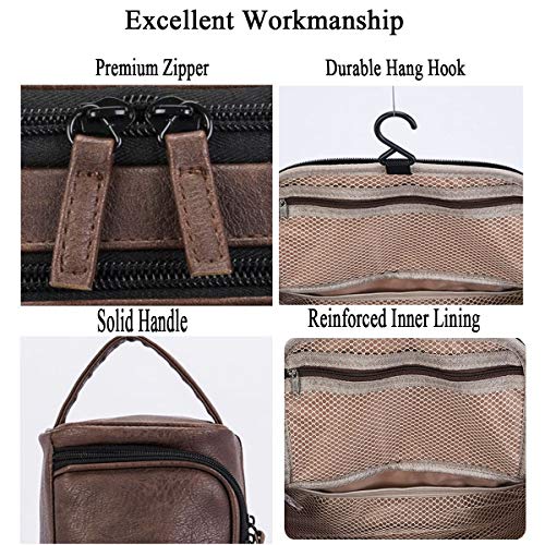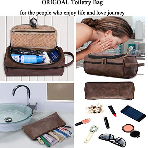 ORIGOAL Premium PU Leather Unisex Toiletry Bag Toiletry Organizer Wash Bag Bathroom Shower Bag with hanging hook, Dopp…