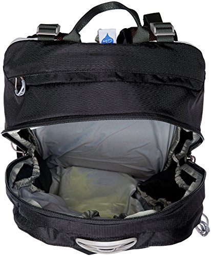 External hydration sleeve in backpanel simplifies refilling and protects pack content from spills
