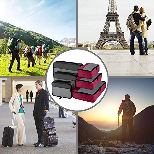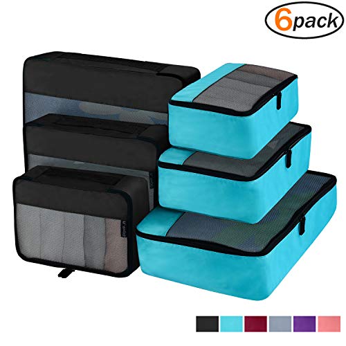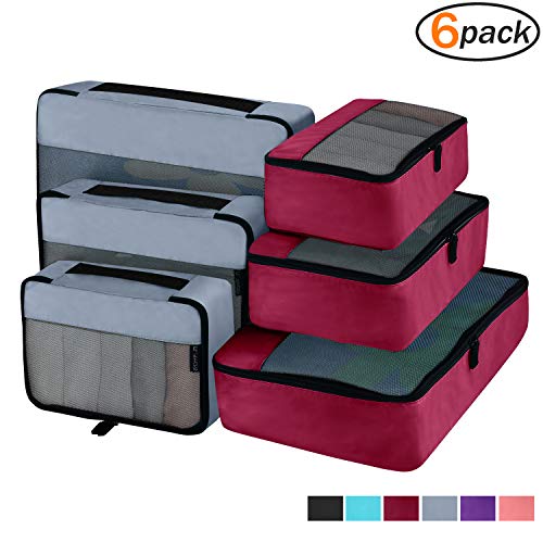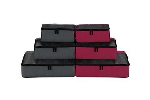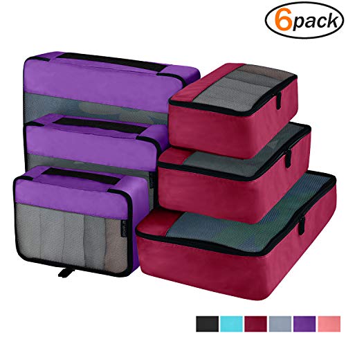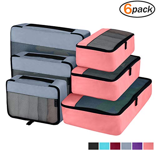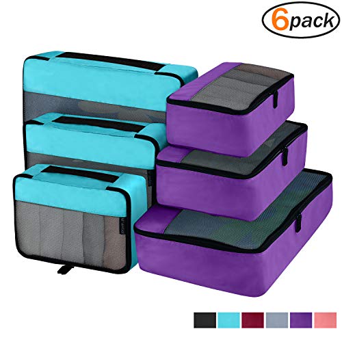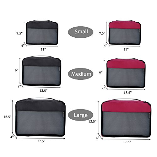 Thoughtful Design-These travel packing organizer bags come in 6 set, 2 color at 3 size:Small is 11×7.5×4 inches (L×W×H),Medium is13.5×9×4 inches (L×W×H) ,Large is 17.5×12.5×4 inches (L×W×H)).Different color easy to tell, different size separate clean and dirty cloth, washing tools, cosmetics or other small gadgets.