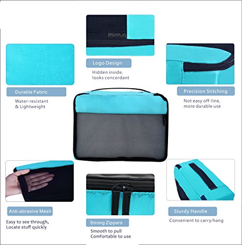Best Travel Buddy-Easyfun Nylon packing cube has zipeer and handle, 100% save your space,time and money. Mesh top panel, breathable slim not occupy the luggage space. Mesh design, easy to identify also good ventilation. Though carry on 6 travel packing cubes set for luggage, all lightweight, not overcharge when airport checkout.