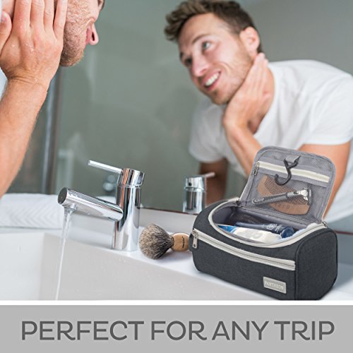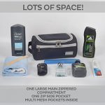 WIDE OPEN DESIGN WITH ORGANIZED COMPARTMENTS: Compact yet spacious, this travel bag provides adequate room for all your essentials. The bag as a whole measures 9.25 L x 4.72 W x 4.72 H in Inches / 23.5 L x 12 W x 12 H in centimeters, with a volume of 3.3 L. It features a main compartment that holds larger items such as shampoo bottles or shaving cream, a zippered mesh pouch that keeps your smaller toiletries and cosmetics in place, and a front zipper pocket that provides extra storage with easy