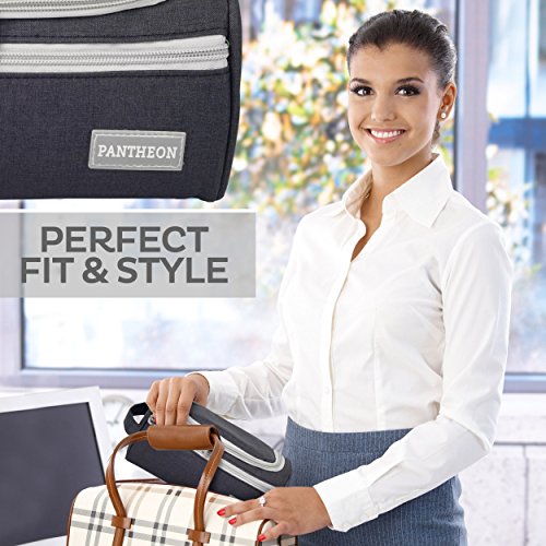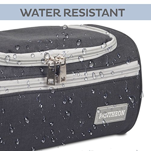 HIGH-QUALITY DURABLE MATERIAL: This exceptional toiletry travel bag by Pantheon is made of attractive Cationic Oxford cloth, which is known for its lightweight yet durable qualities, the perfect combination for traveling. This specific material is water resistant, making it safe for use in environments where it may become wet, such as a bathroom or shower area. The interior of the bag is securely lined with a special material that can handle accidental toiletry spills and can be easily cleaned t