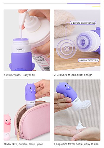 GOODBYE LEAKAGE! Worried that your costly makeup leak outside of the travel bottles to make your luggage in mess? Our products can solve problems for you, the silicone travelers bottle are designed with a silicone stretchy film in the small mouth and 3-layer anti-leakage cap design! Wide mouth for easy refilling with small mouth for user friendly controlled flow!