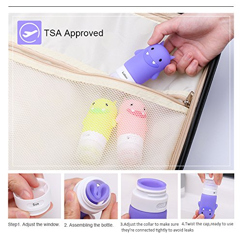 TSA APPROVED, FDA CERTIFIED,100% FOOD GRADE BPA FREE SILICONE! Designed with safety and convenience for our customers. Our silicone travel bottles are made of FDA approved and 100% BPA free food grade silicone, making it safe for other liquids like sauce, salad dressing or even baby food.Travel toiletry containers set have TSA airline carry-on approved. You can bring it on airplane.