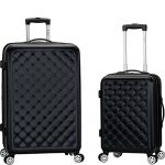 This 2 PC. Set is made of polycarbonate. The major benefits of this material – it is extremely lightweight, it is durable, and protects the contents of your luggage. Eight multi directional spinner wheels rotate 360 degrees for easy maneuverability. This luggage allows you to pack more while avoiding the excess weight surcharges imposed by most airlines. Features: expandable, multi-directional spinner wheels for easy maneuverability. Modern internal chrome telescoping handle with push button handle. Interior mesh and zip pocket and elastic pocket. Measures: 20″X13″x9″ weighs 6 lbs, 28″x17″x12″ weighs 10 lbs.