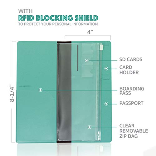 STYLE MEETS FUNCTION. The functional zippered clear pouch is intended for you to keep all indispensable documents such as: vital notes, Sim cards, insurance cards and trip details notes, a Pen, SD cards. The idea is that you keep your travel documents together with best guarded item when traveling: your passport.