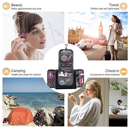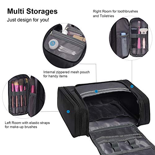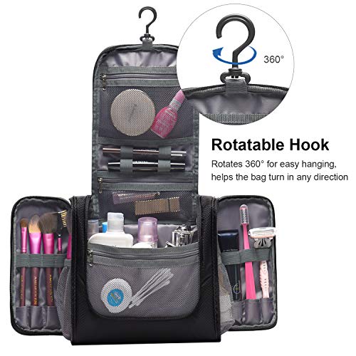 【Durable Zipper and Rotatable Hanging Hook】- Heavy duty smooth metal zippers help easily open and close the travel bag, will never be broken or stuck. Built-in strong rotatable hanging hook helps the bag turn in any direction, makes more flexible to hang the toiletry kit everywhere