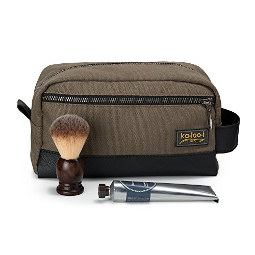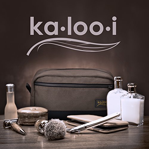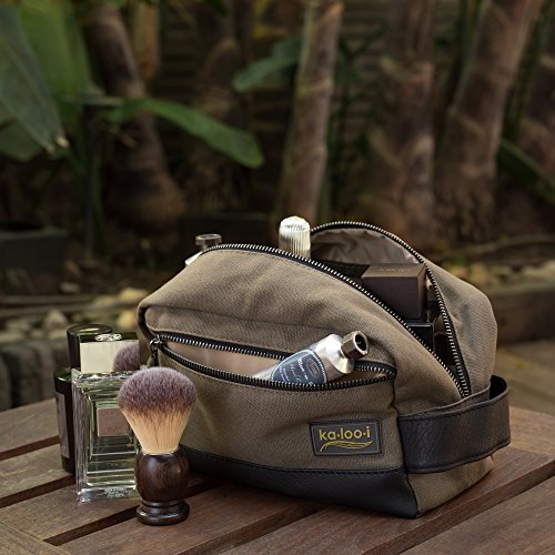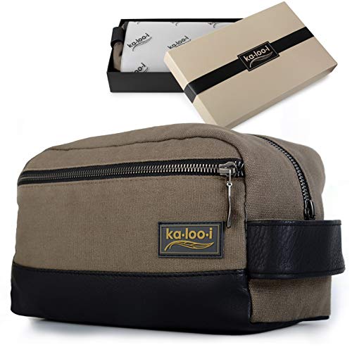Toiletry Bag for Men – Canvas Dopp Kit for Travel, Gym, Grooming & Shaving, Waterproof Lining, 10″ x 4.5″ x 5.5″, Olive Green Color with Vegan Leather Trim, Comes in Gift Box by Kalooi