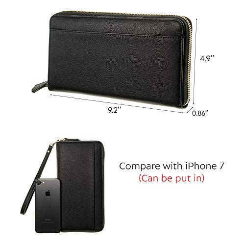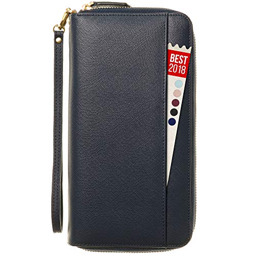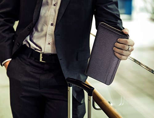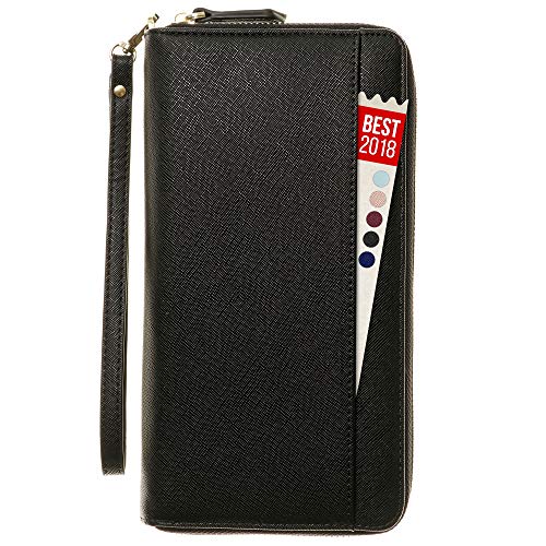 ZIP AROUND womens travel wallet case – nothing will fall or slip out by accident. REMOVABLE STRAP keeps your hands free to hold other things. CONVENIENT OUTSIDE POCKET for a last minute note, cash or anything else you might need on the run