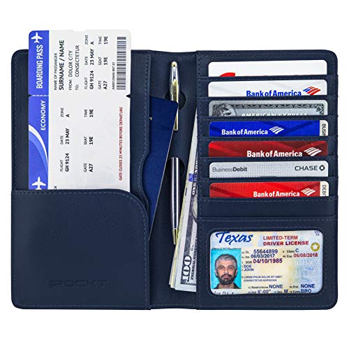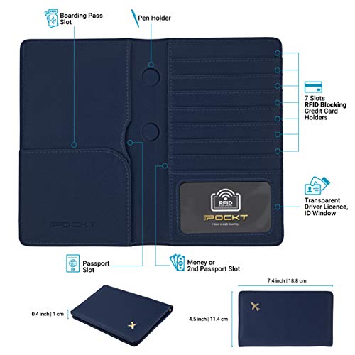 FASHIONABLE & AESTHETIC DESIGN: The POCKT Passport Holders designed in USA – PU Leather material gives you comfortable feeling and soft touch. Let’s organize all of your travel documents with our extended wallet – 2 slots for passport, 1 slot for ticket or boarding pass, 1 slot for paper currency, and 7 slots for credit cards, 1 slot for pen, 1 slot for ID card. Slim and rounded corner design fits in comfortably most pockets.