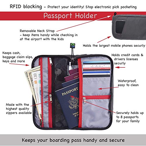 EASIER WITH THE KIDS – Unlike other travel wallets and passport holders which don’t have a detachable neck lanyard ours includes a lightweight strap which allows you choose your way to wear it (around your neck or even under your clothes on your body to keep concealed) during those ultra busy times.