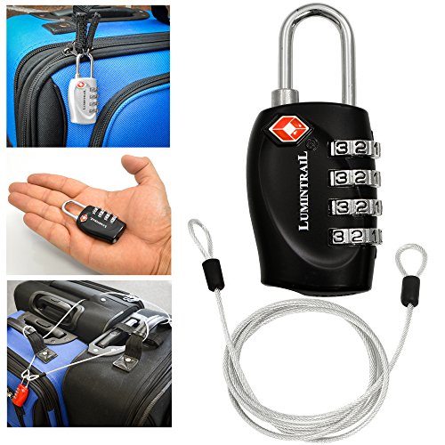 TSA Approved Combination Travel Luggage lock w/ 4ft Cable for Suitcase – Black