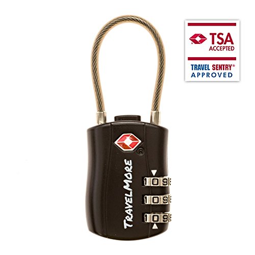 TSA Approved Travel Combination Cable Luggage Locks for Suitcases & Backpacks – 1 Pack of Black TSA Lock