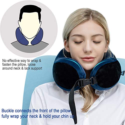 FULLY SUPPORTIVE: Many other travel neck pillows only offer rear support when you sleep on your back. Widely used small toggles may not be strong enough to fasten the pillow in place when you sleep on one side or lean forward. So we use strong buckle to ensure our travel pillow to stay wrapped and hold your chin and head upright.