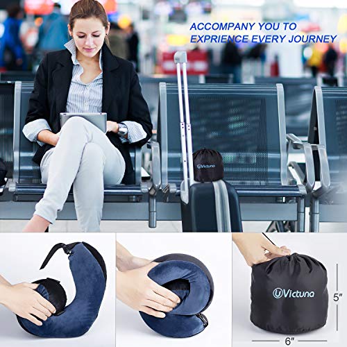 INNOVATIVE ERGONOMIC DESIGN: Our Victuna pillow is the travel pillow that can actually support your head, neck and chin without any awkward position or discomfort. The raised lobes prevent your neck from tilting too much; Sunken sides keep pressure off the bottom of your ears; Heightened flat back will not push your head forward.