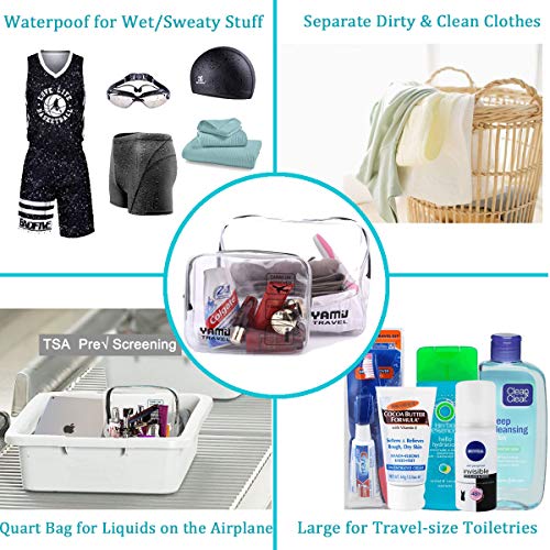 —Extra travel quart bag for your travel size toiletries on airplane, quickly throught the security check than others. Not enough? Look, also a larger clear bag for you to fit the full size toiletries. 2-pack clear bags are waterproof, also fit for dirty/sweaty clothes.