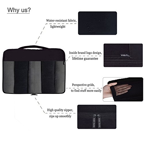 —Travel Cubes for Packing: The top mesh grid and zipper part are not waterproof.