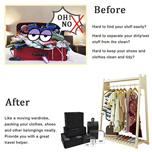 Perfect Travel Partner—We have a set with 7-pieces to fit all your travel needs into the suitcase, clothes & shoes & toiletries, seprate your stuff from each bag to keep the suitcase clean and tidy.